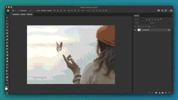 A designer using integrated AI tools to remove the background from an image.